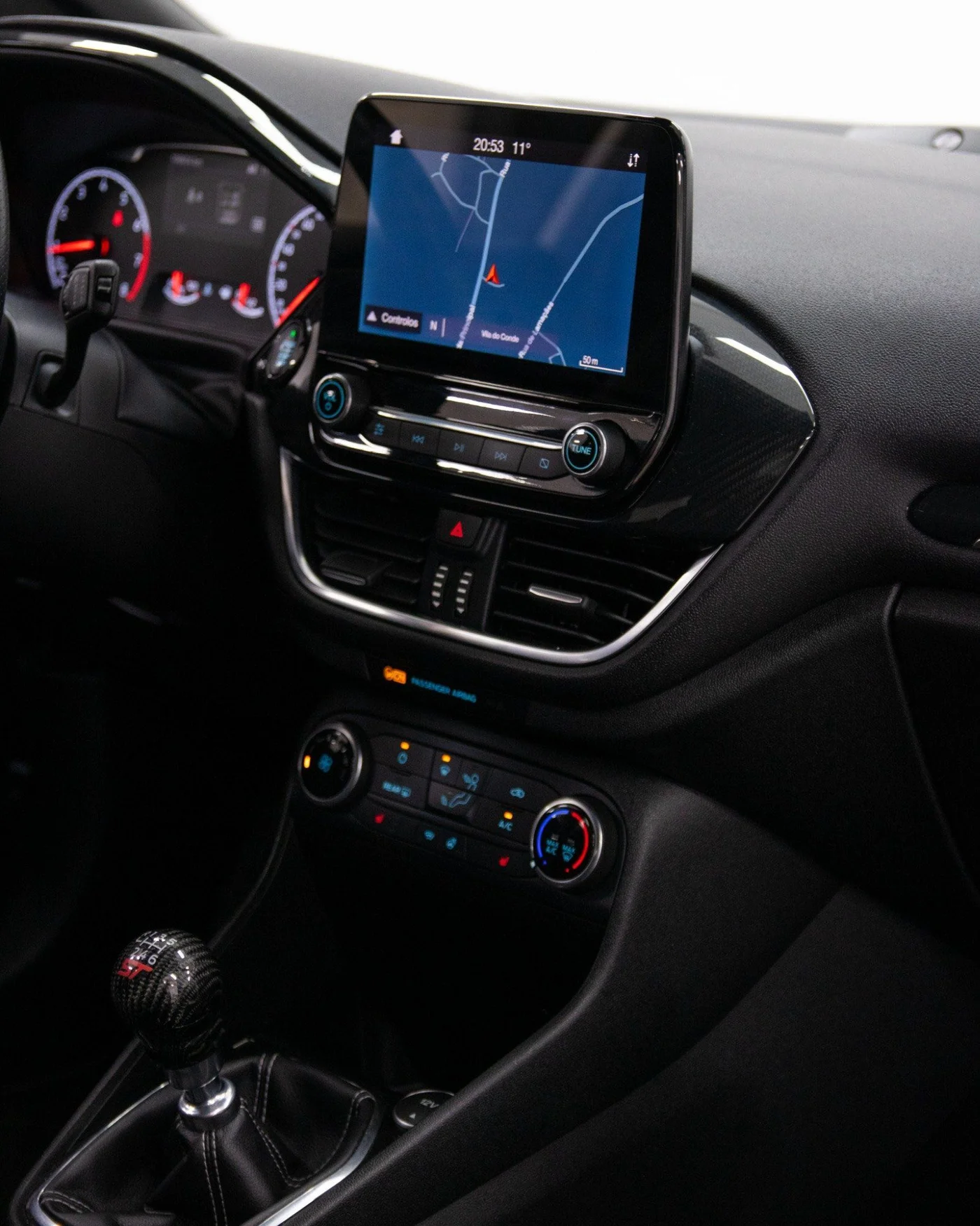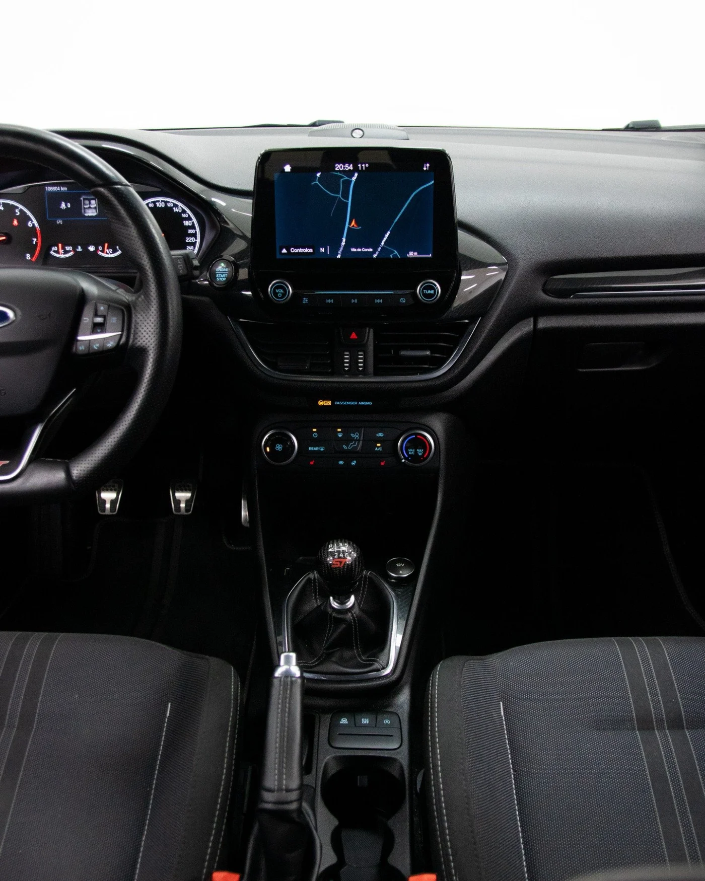 Equipado com o compacto mas potente motor 1.5 EcoBoost de 200 cavalos, o Fiesta ST surpreende pela entrega de potência linear e pelo torque generoso disponível desde baixas rotações. A caixa manual de 6 velocidades tem um curso curto e preciso, convidando a subir e descer mudanças constantemente — exactamente como deve ser num verdadeiro desportivo.